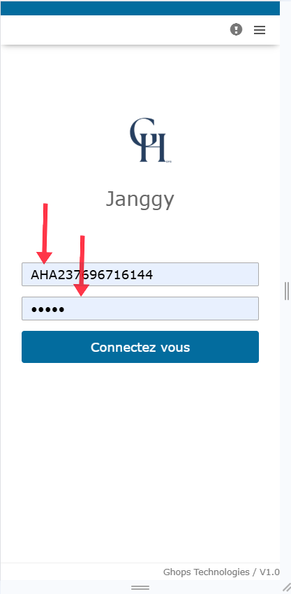 a. Entrez votre nom d'utilisateur : votre nom d'utilisateur est composé de l'abréviation du nom de votre association suivi de votre numero de téléphone avec les referents de votre pays