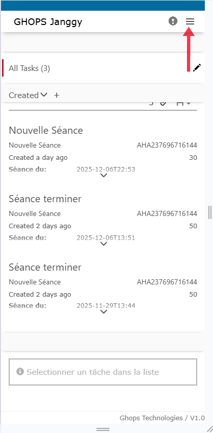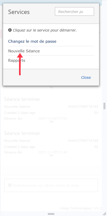 - Cliquez sur nouvelle séance qui va apparaitre en bas de ton écran puis déroulez vers le bas de la page pour voir la séance et commencez à remplir les informations de la séance