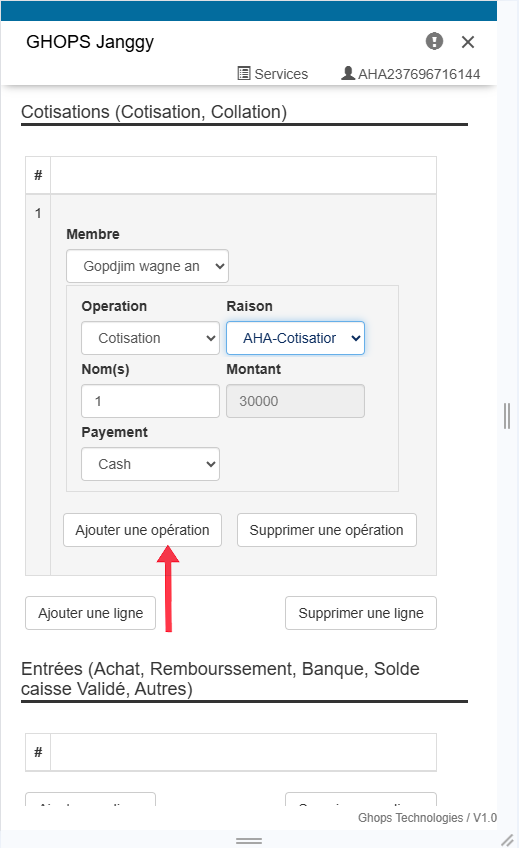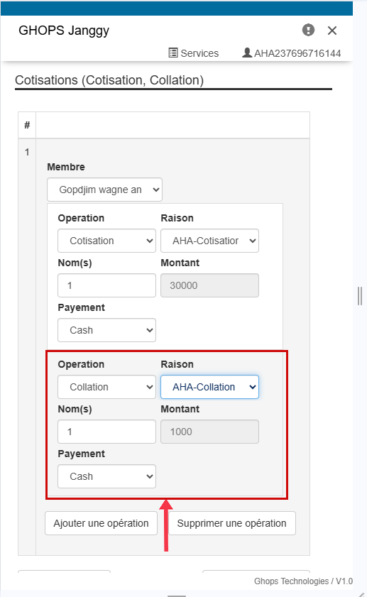 apres la cotisation cliquez sur ajouter une nouvelle operation pour ajouter la collation
