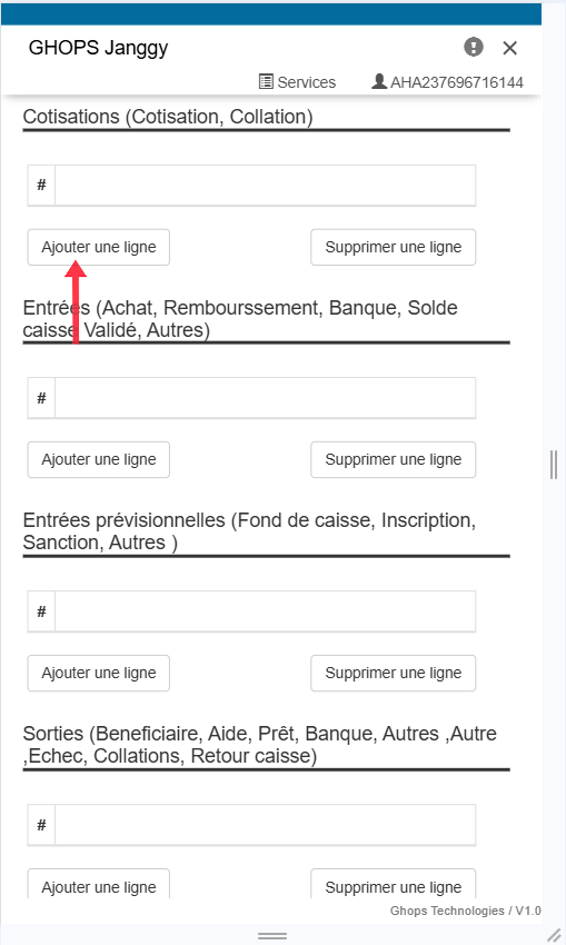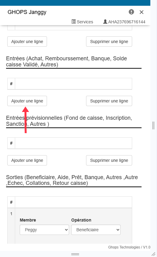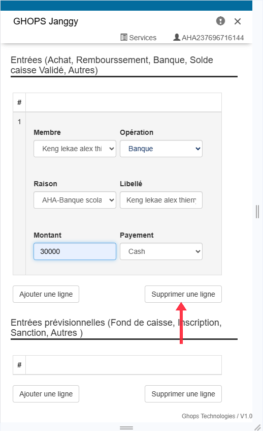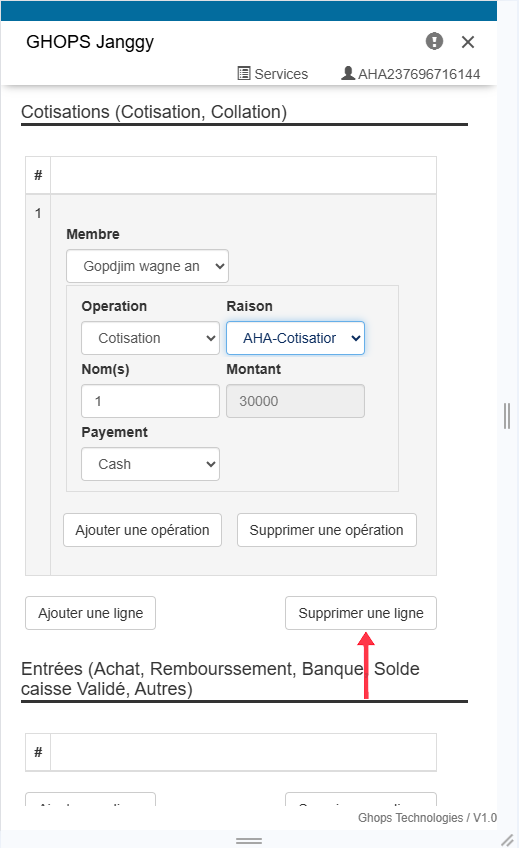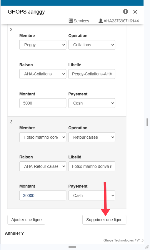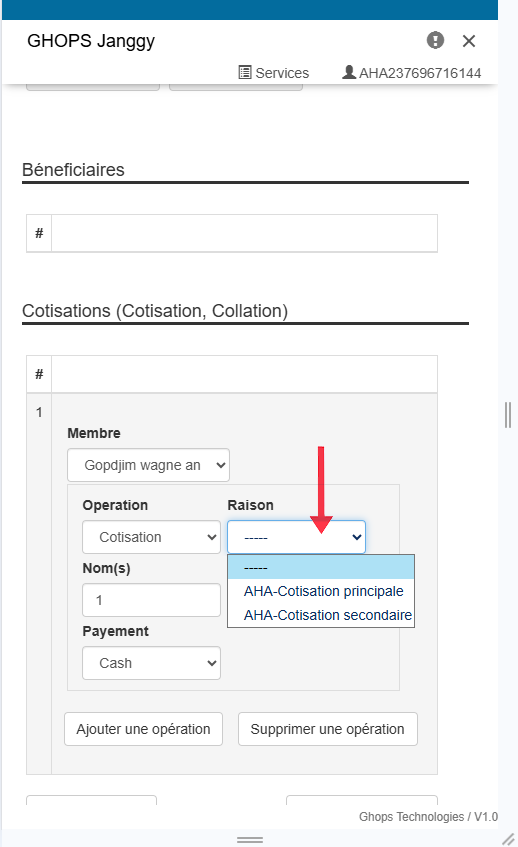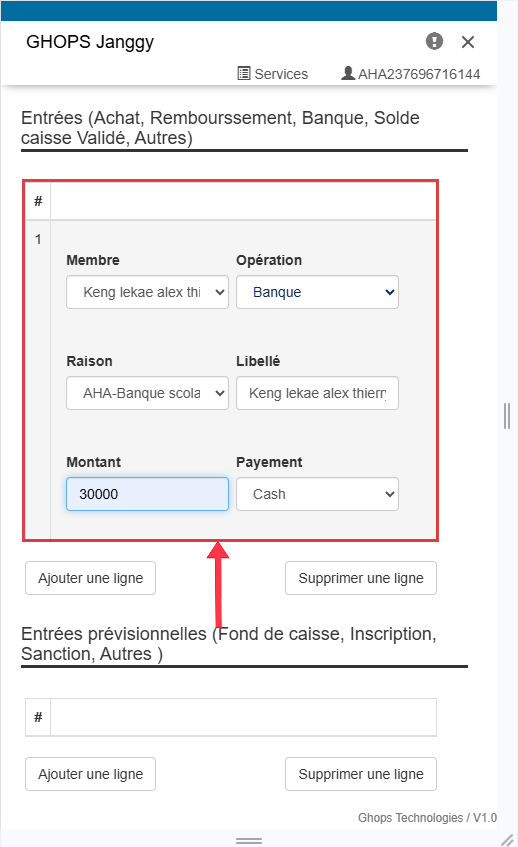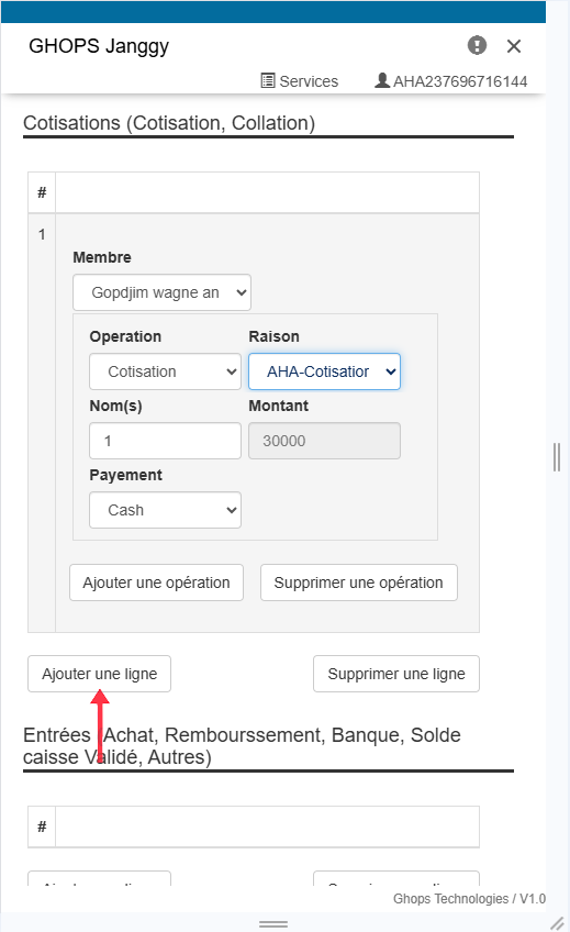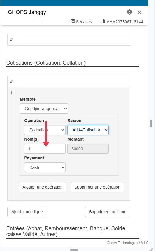 Remplissez tous les champs qui apparaissent (membre, operateur, raison, libelle, montant )