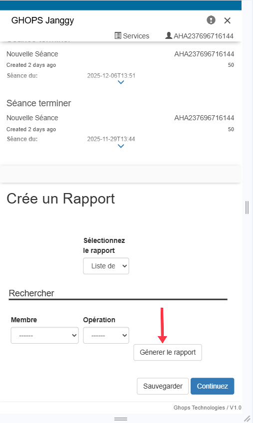 lorsque vous enregistrez une séance il est conseillé de faire une sauvegarde pour ne pas perdre vos enregistrements. pour sauvegarder descendez tout en bas de votre page et appuyez sur sauvegarder